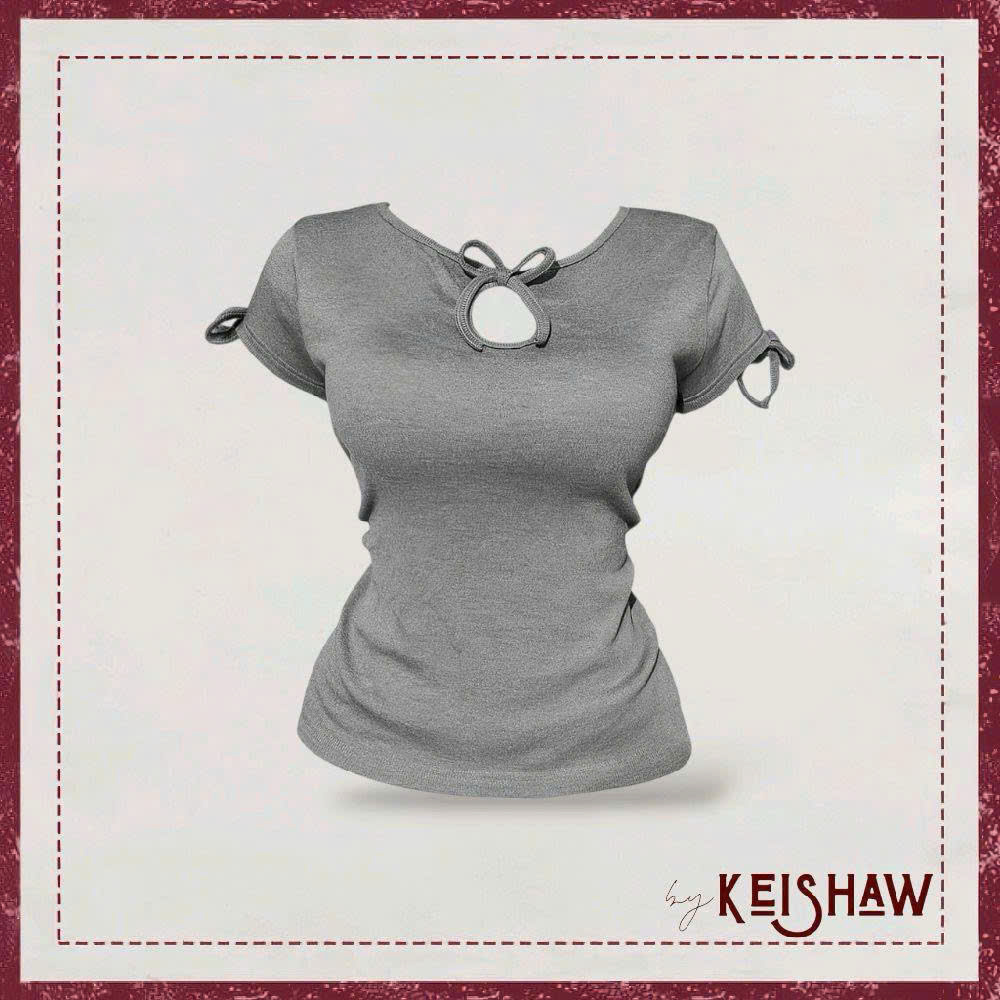 Áo Thun Nữ Cổ Khoét Giọt Nước Thắt Nơ mang đến phong cách mới mẻ. Vải thun