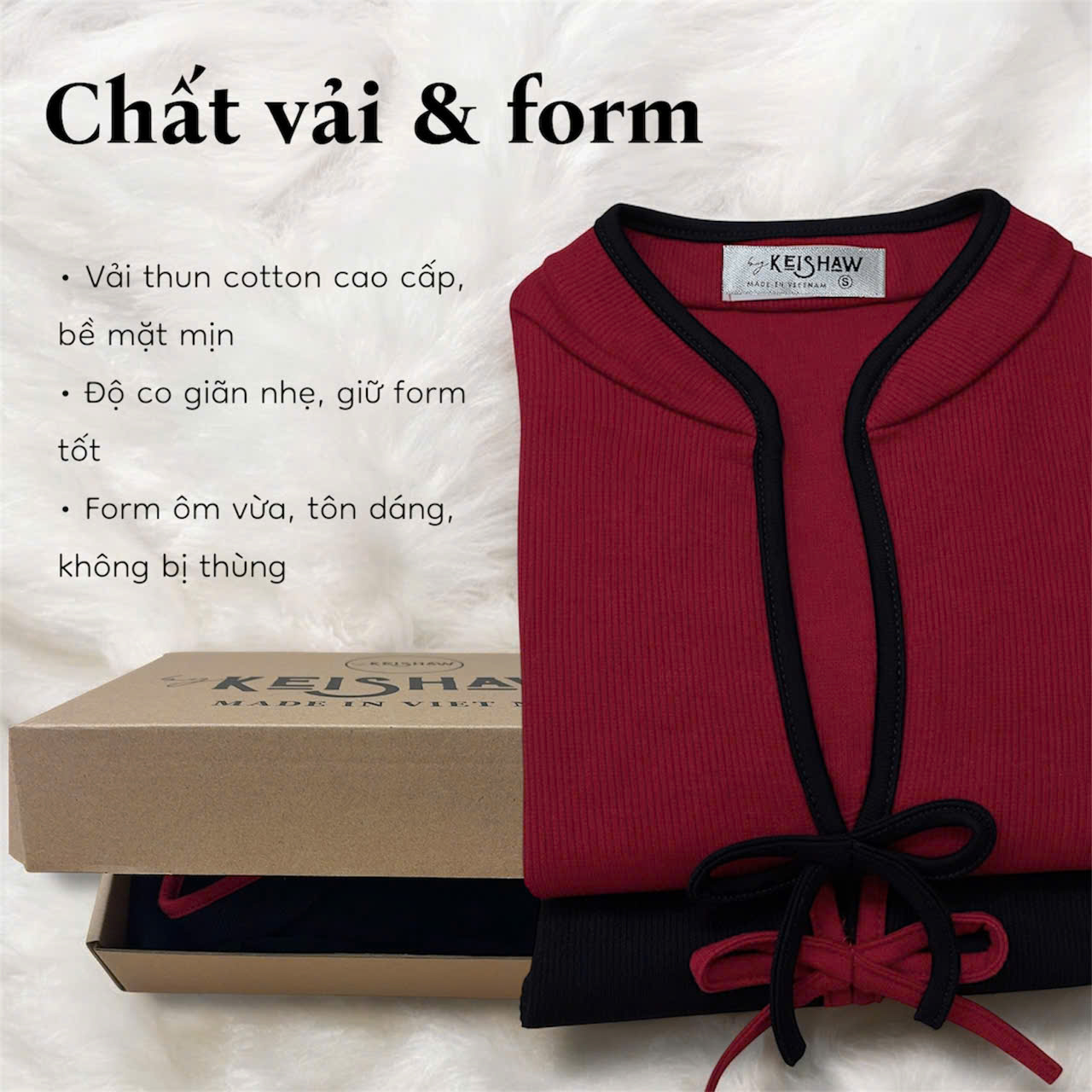 Noir Rouge Top là thiết kế mang sắc thái cổ điển pha lẫn cá tính, lấy cảm hứng từ vẻ đẹp Á Đông hiện đại – tối giản nhưng đầy điểm nhấn. Phom áo ôm vừa, được cắt may gọn gàng để tôn dáng mà vẫn đảm bảo sự thoải mái khi mặc.