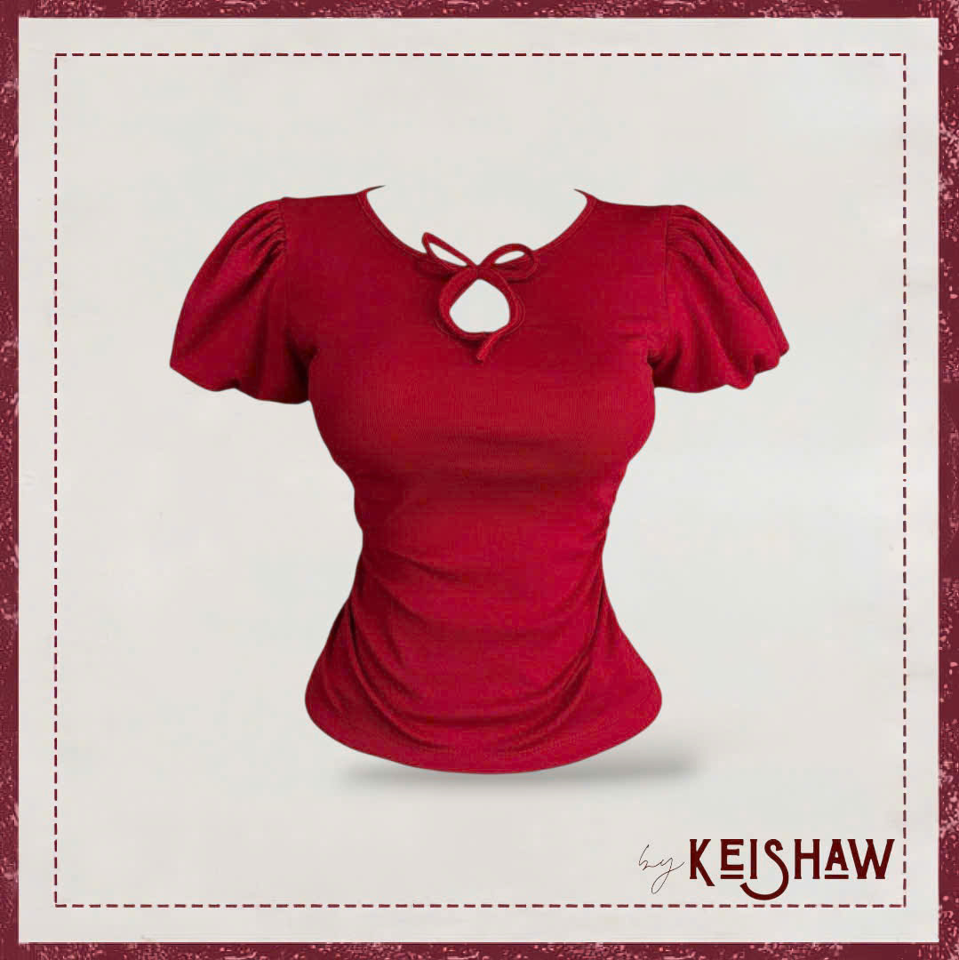 Chiếc áo nổi bật với thiết kế tay phồng nhẹ và chi tiết nơ trước ngực duyên dáng. Form ôm tôn dáng, chất vải co giãn mịn mát, cực kỳ thoải mái khi mặc. Phối dễ với chân váy, quần jeans hay short đều xinh.
